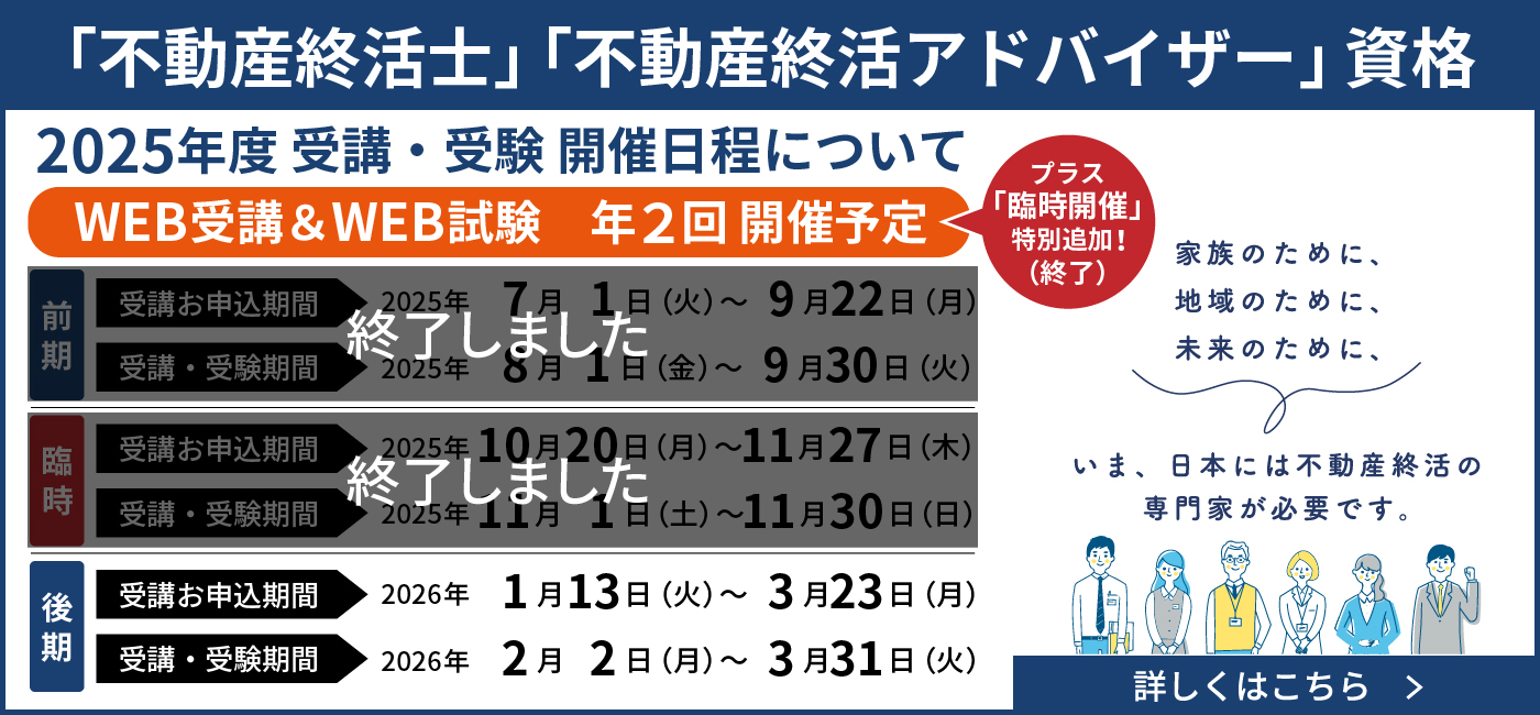 不動産所有者で終活を考える方へのご相談窓口を担うとともに、各地でそのご相談に対応できるプロを育成するための資格講座の開催や、事例や情報提供などによる啓蒙活動を行っています。