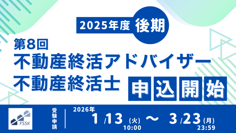 第8回 不動産終活アドバイザー・不動産終活士の試験申込みを開始しました。